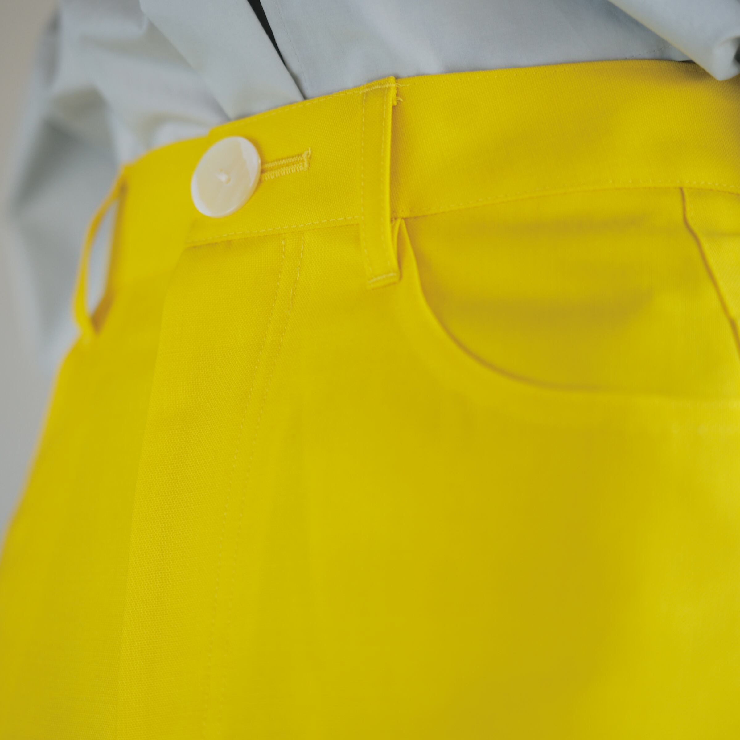 5ポケットでデニムのような作りをしながらもあえてウール素材を使うことで新鮮味があり、カジュアルなイメージに固まりすぎずにオフィスシーンでも着れる一着