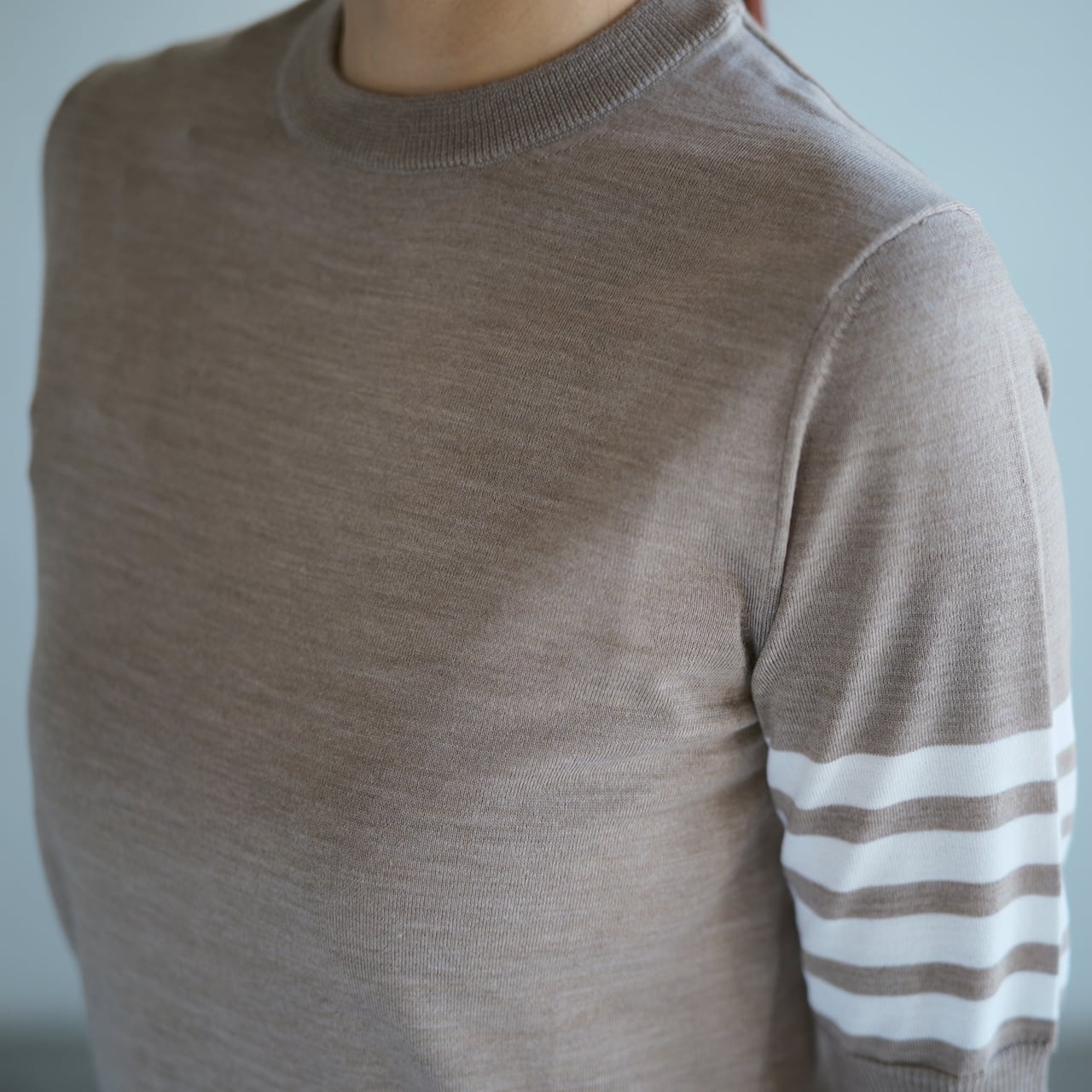 JERSEY STITCH SS TEE IN FINE MERINO WOOL W/ 4BAR STRIPES