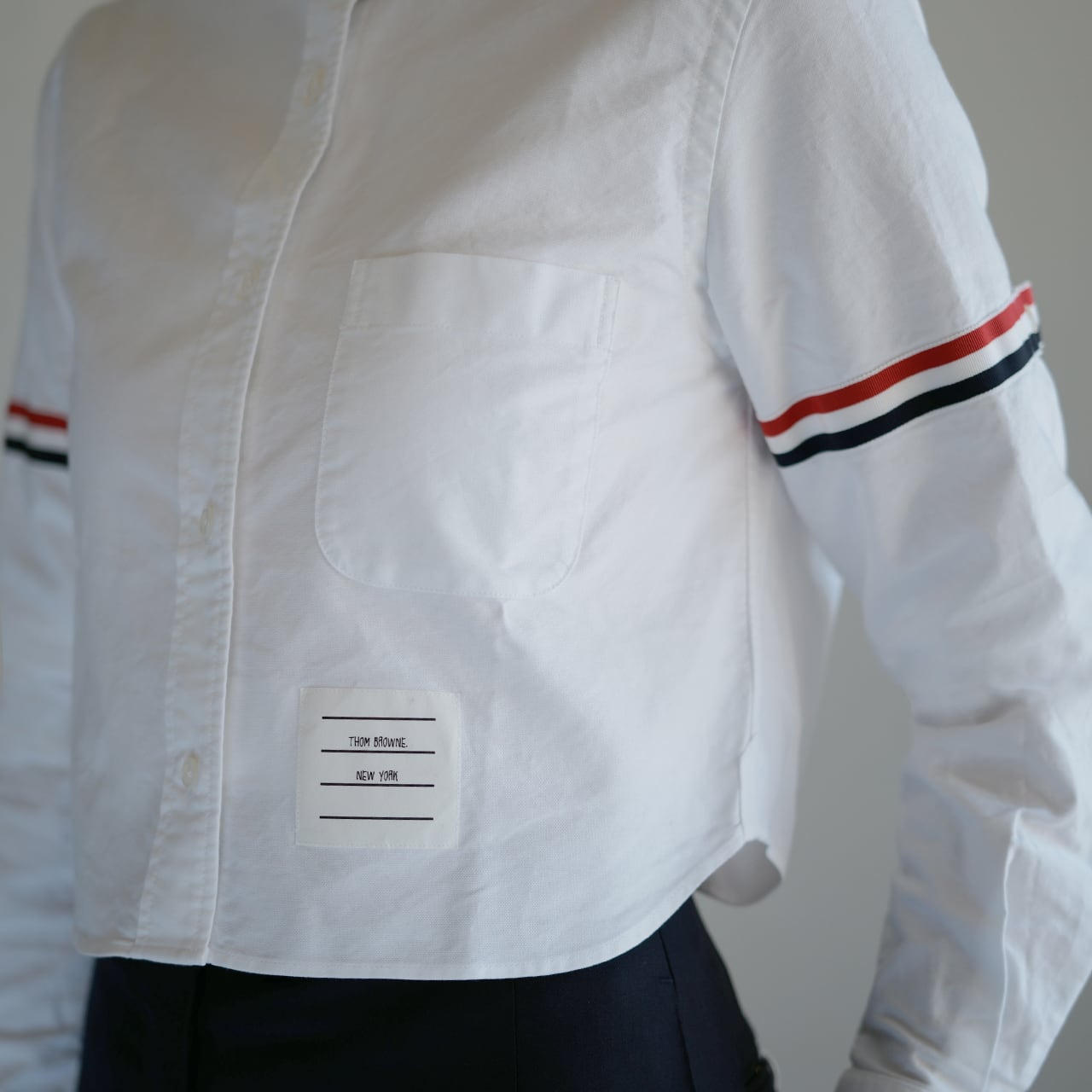 CLASSIC CROPPED ROUND COLLAR SHIRT W/RWB ARMBANDS IN OXFORD