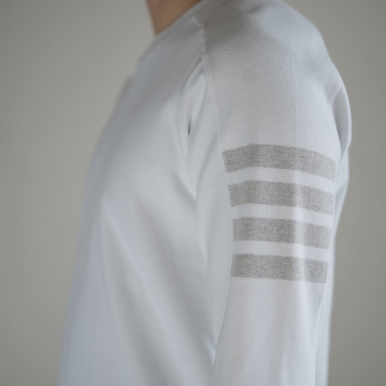 LONG SLEEVE TEE W/ 4 BAR STRIPE IN MILANO COTTON