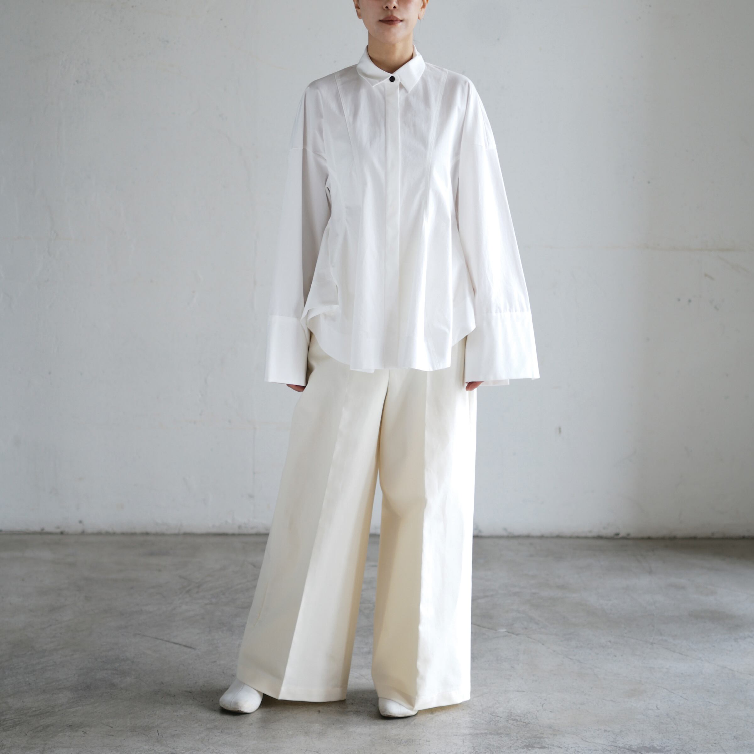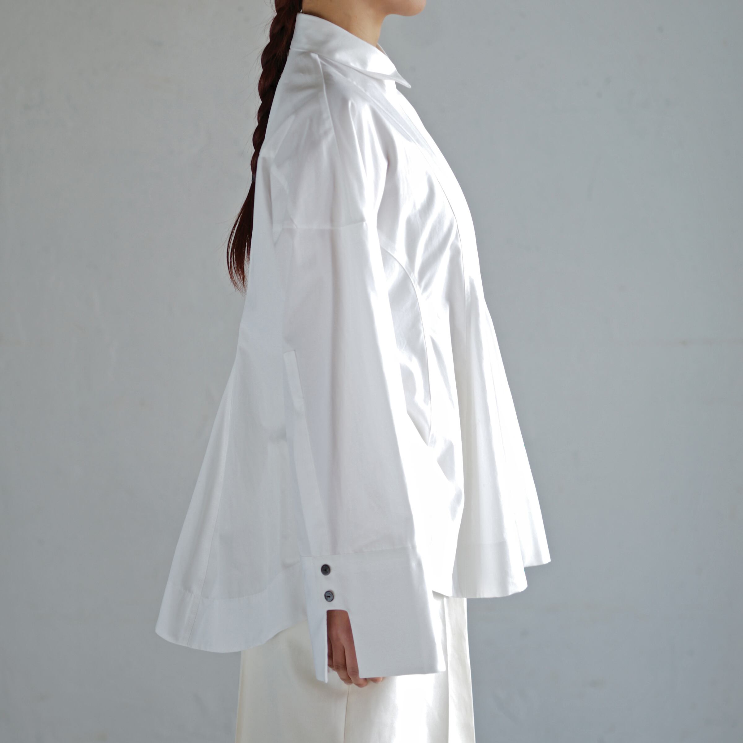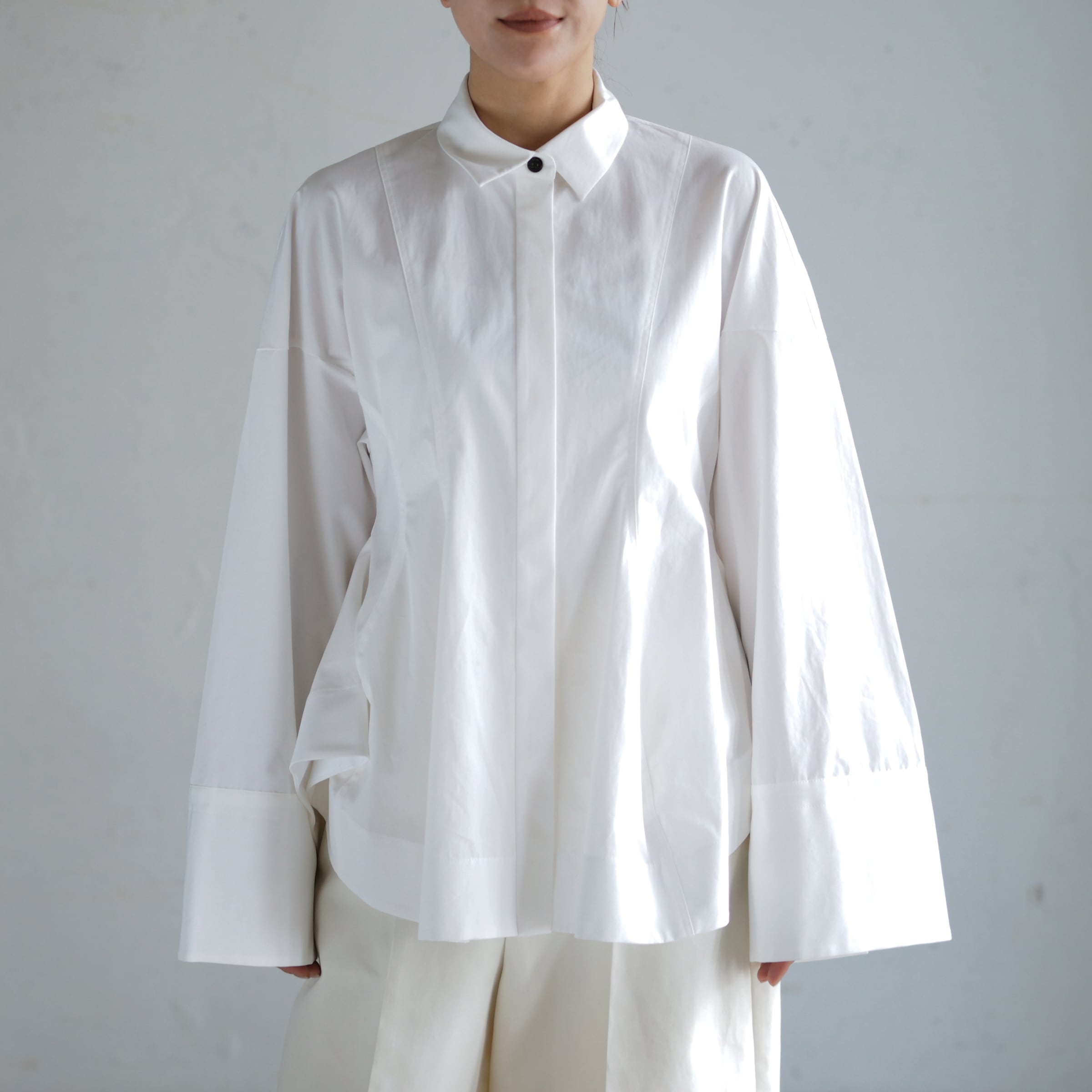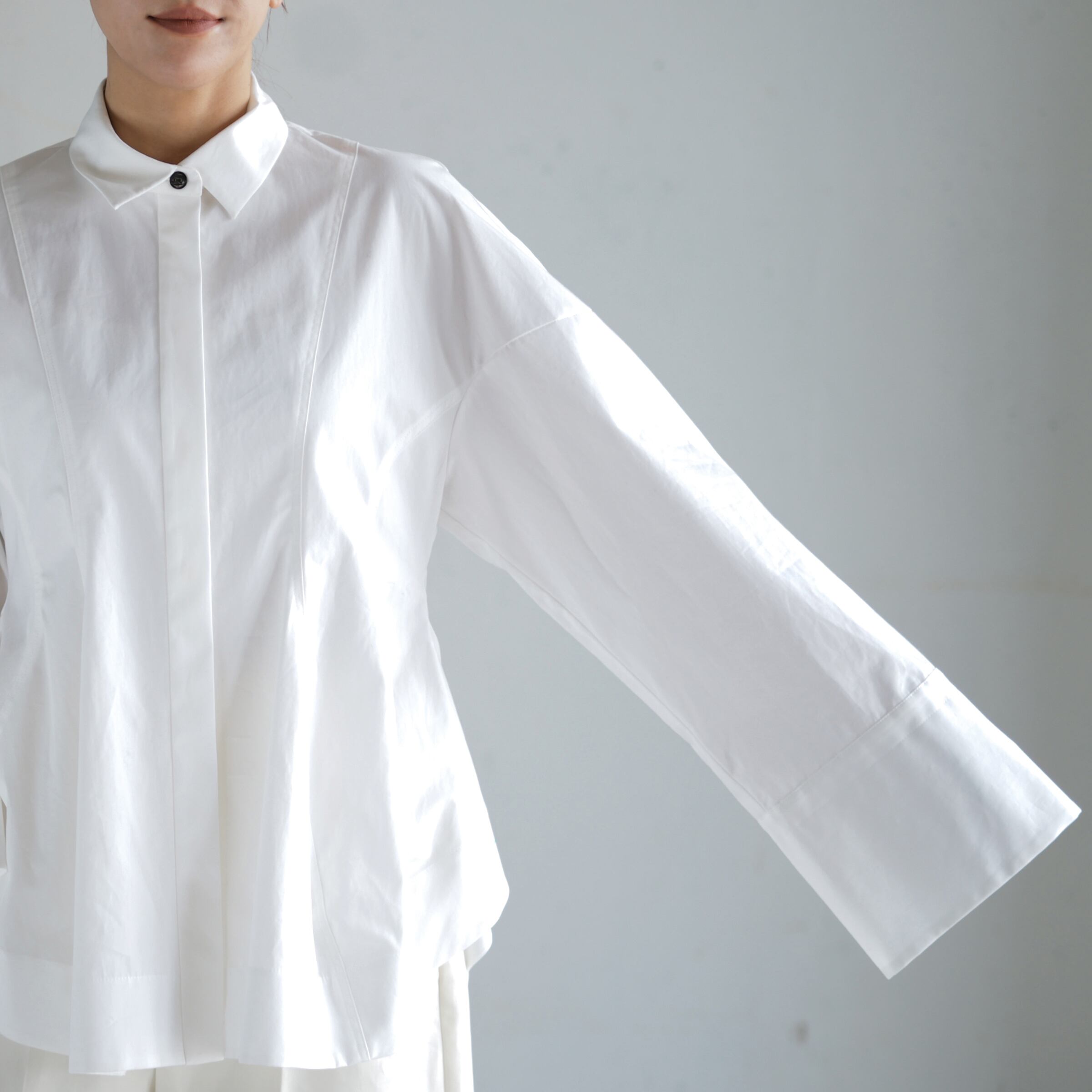 立体的なヘチマシルエットが印象的なシャツ