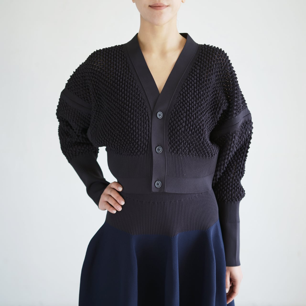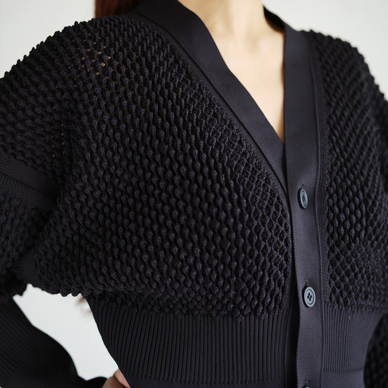 2026SS COLLECTION LATTICE CROPPED CARDIGAN CF011KE119JP00 SIZE:F COL:BLACK 100% Polyester