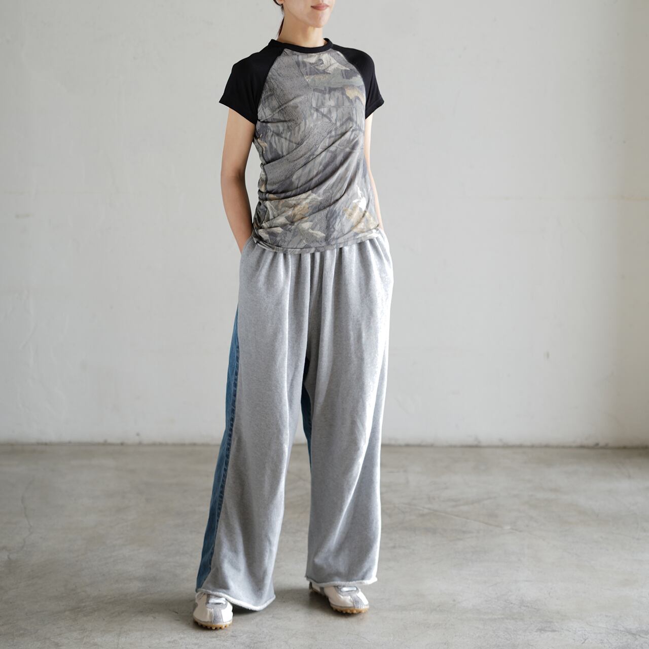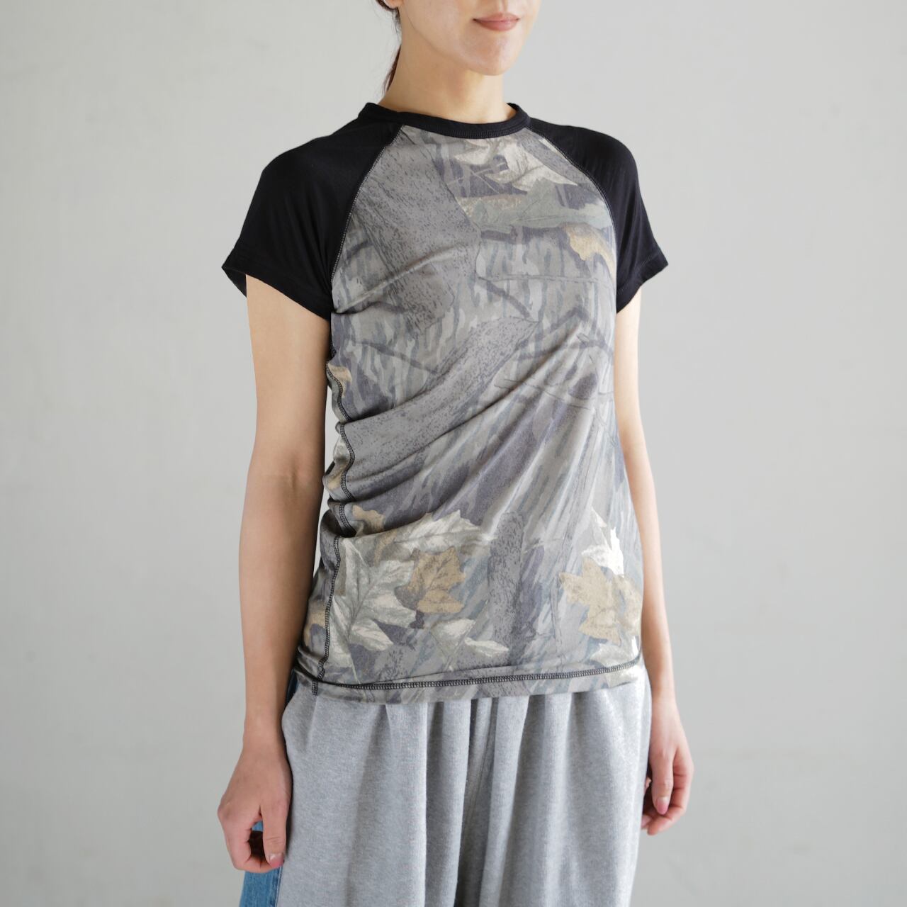 INSCRIRE 2026SS WOMEN COLLECTION I26SS-BC2 Cotton Silk Over Size T-Shir COL.CAMO×BLACK SIZE.M/L 80%COTTON 20%SILK