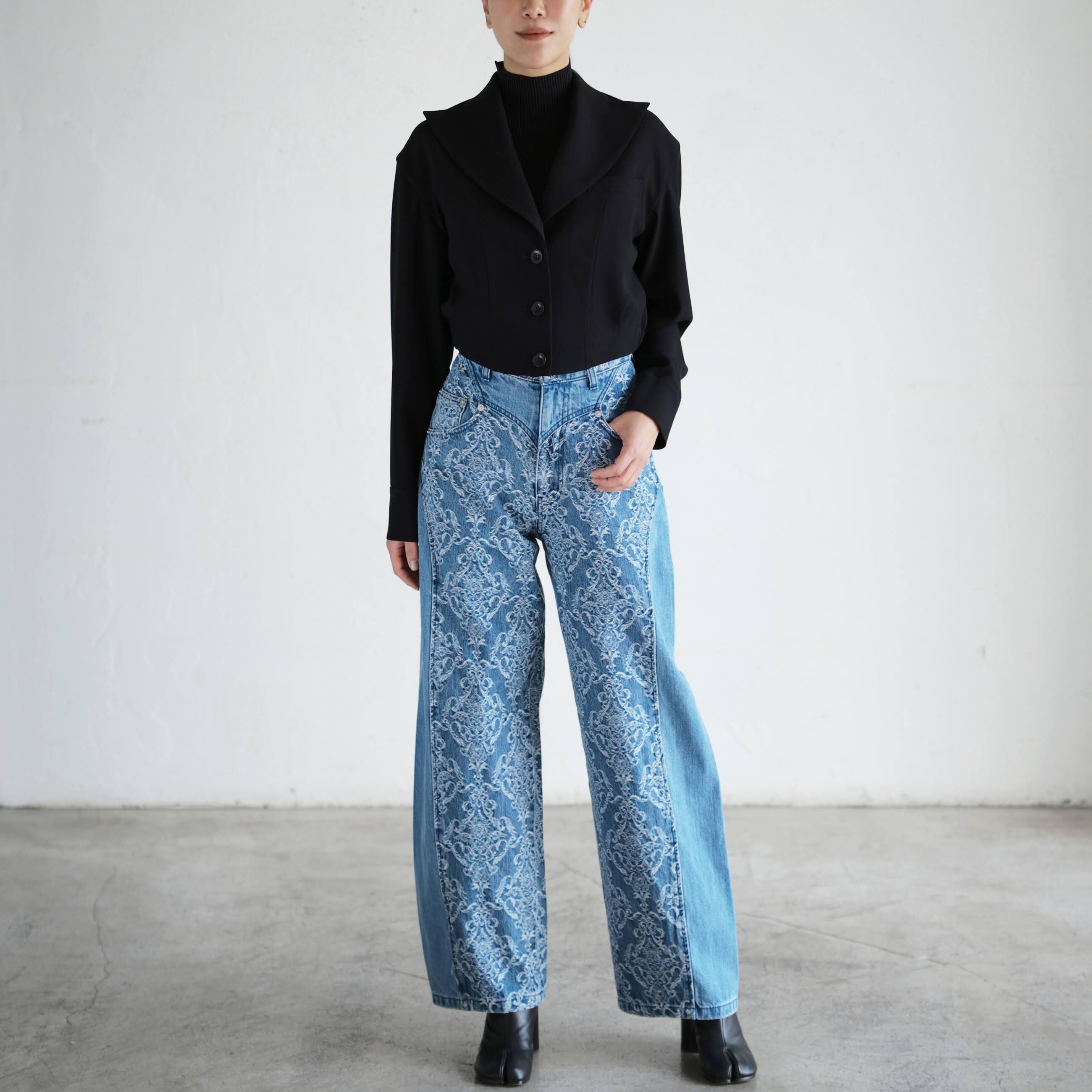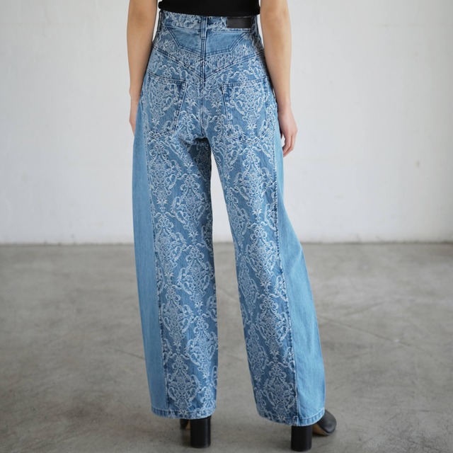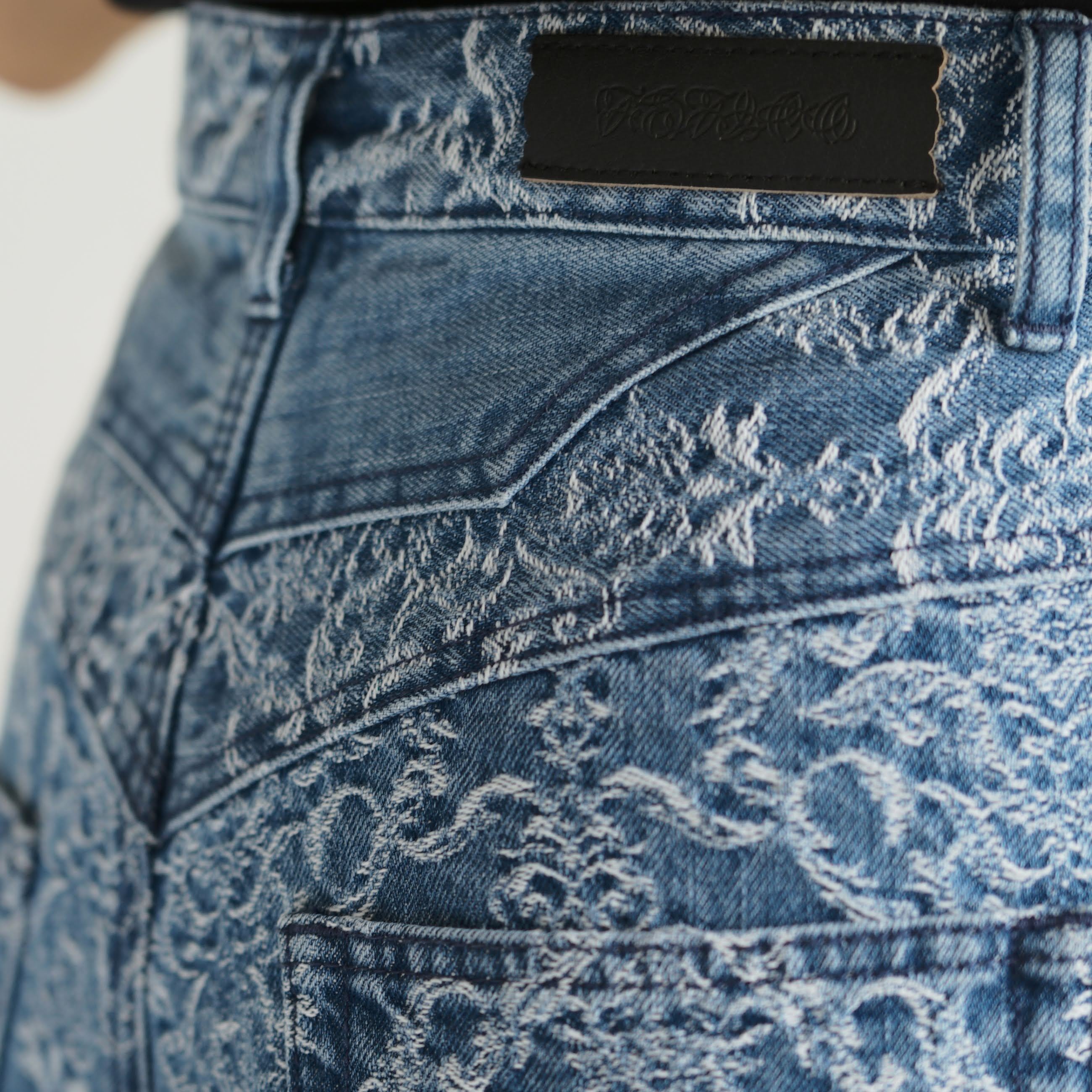FETICO 2026SS WOMEN COLLECTION FTC262-0601A DAMASK-JACQUARD DENIM CURVE-FIT HIGH-RISE JEANS COL.INDIGO DAMASK SIZE.36/38