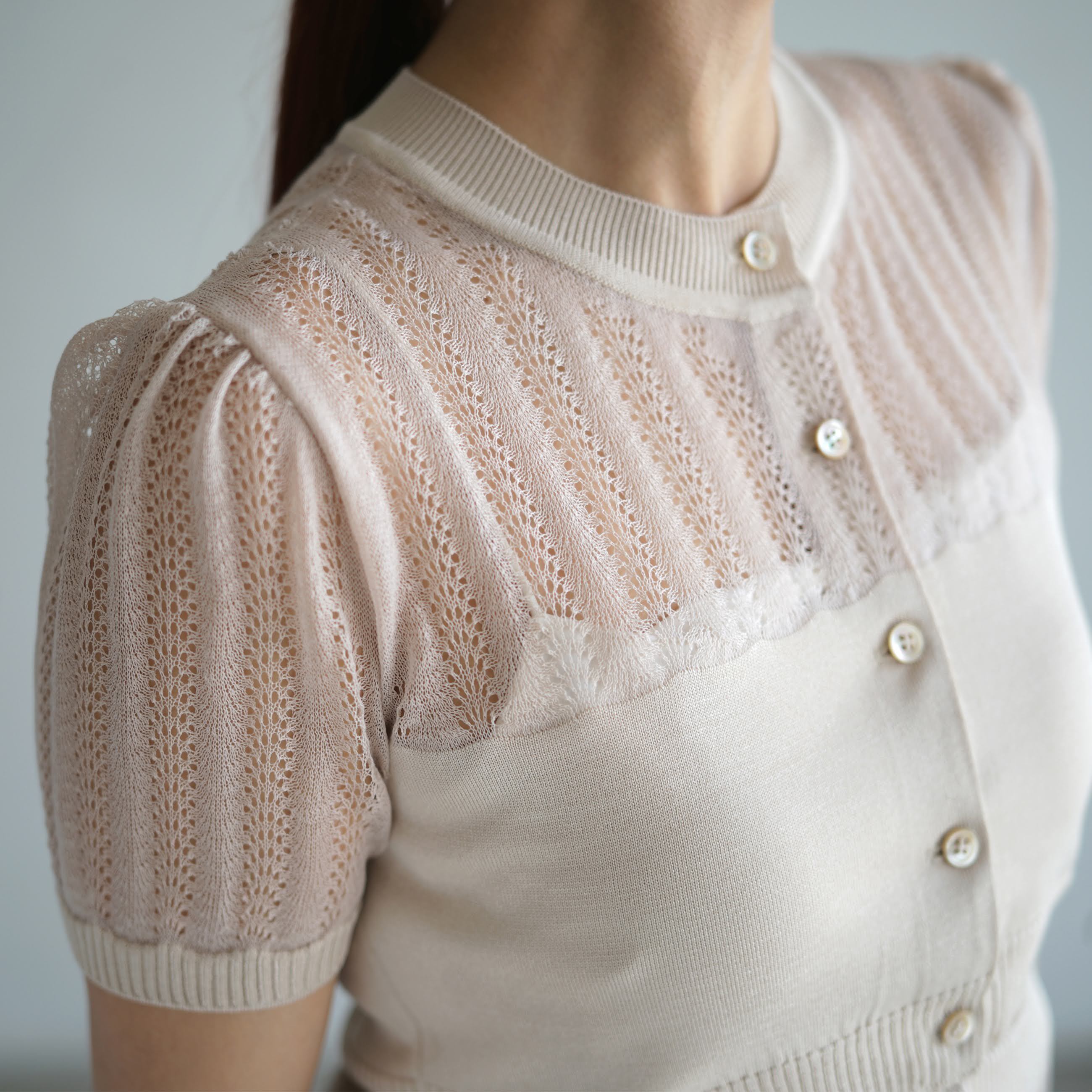 CONVERTIBLE SHEER STRIPE KNIT CARDIGAN