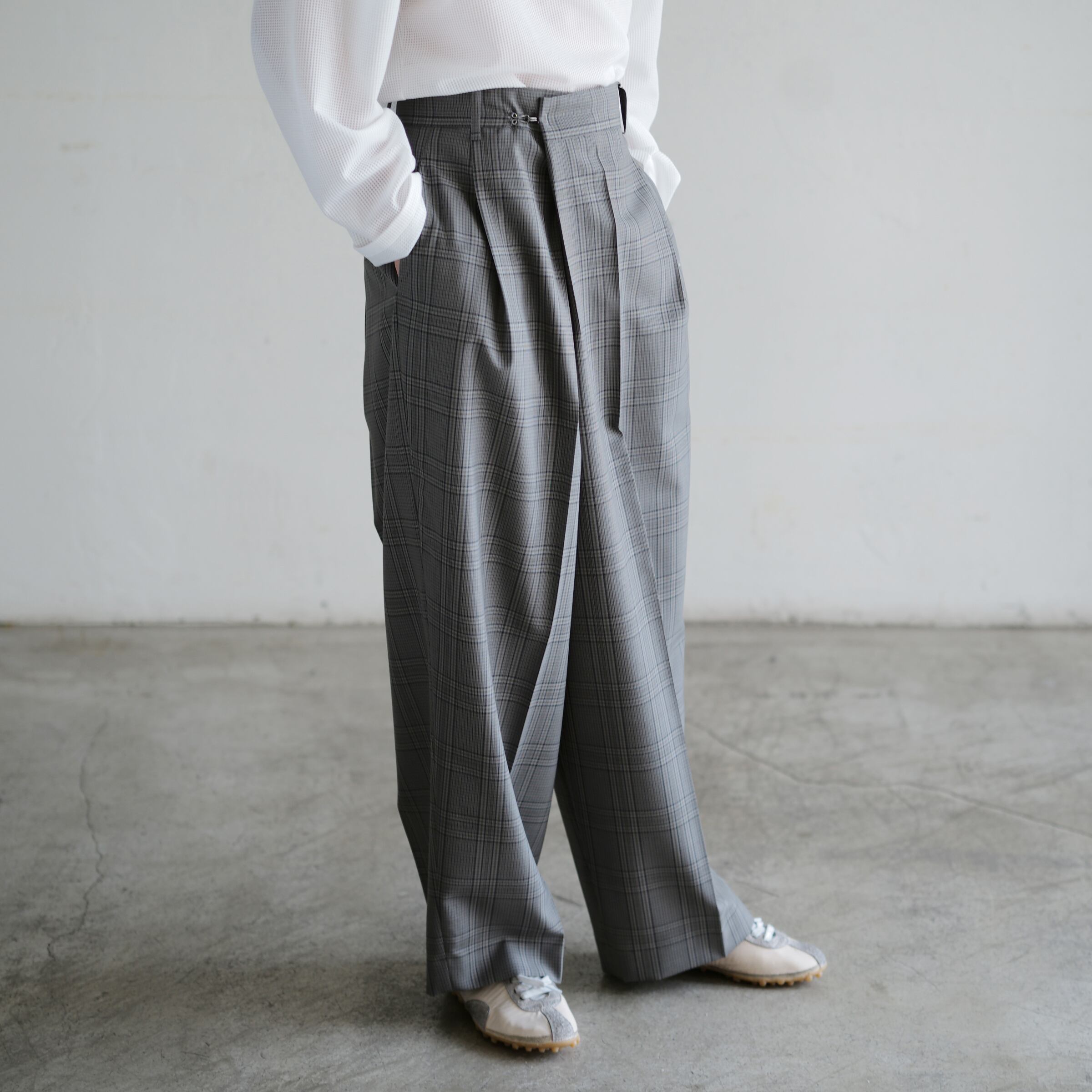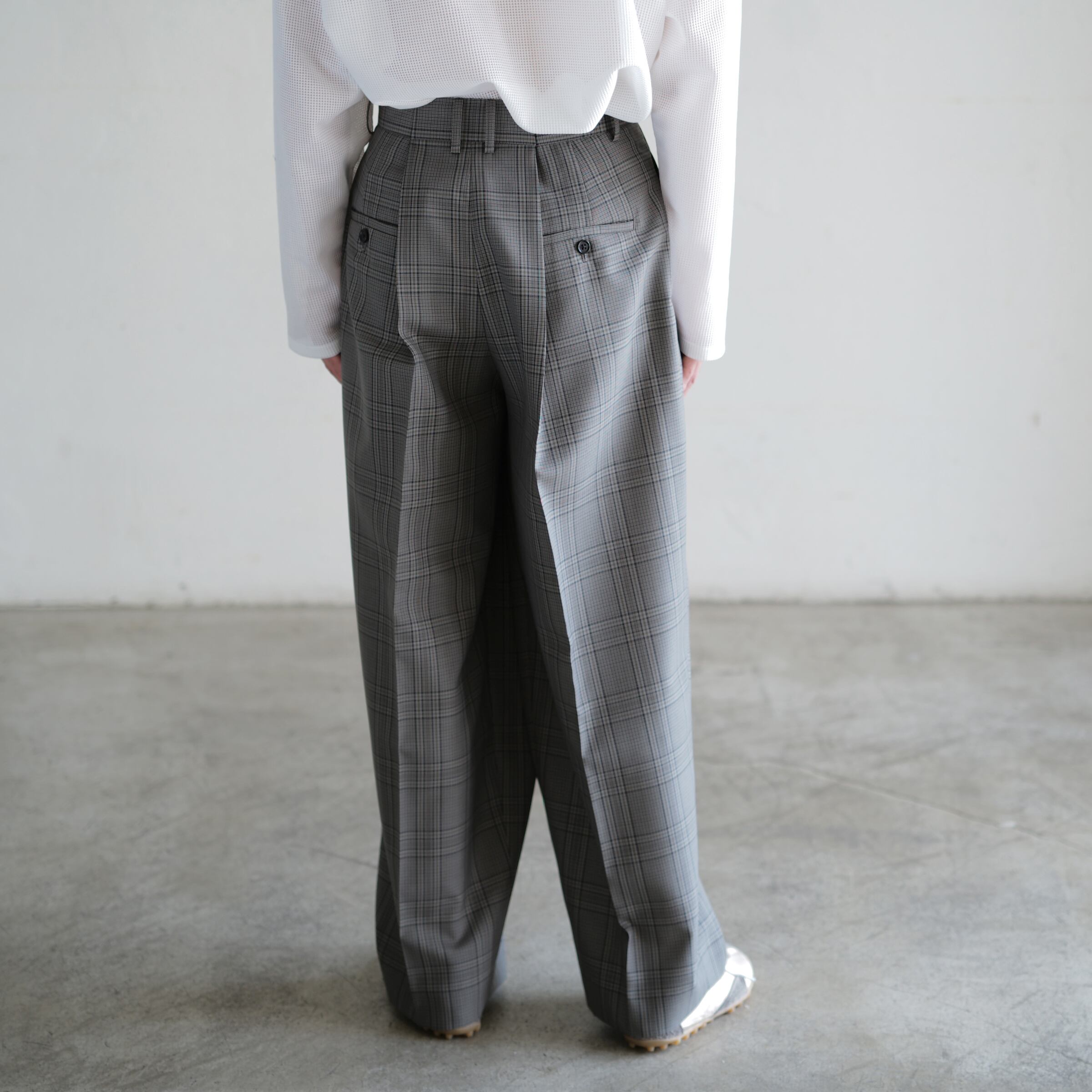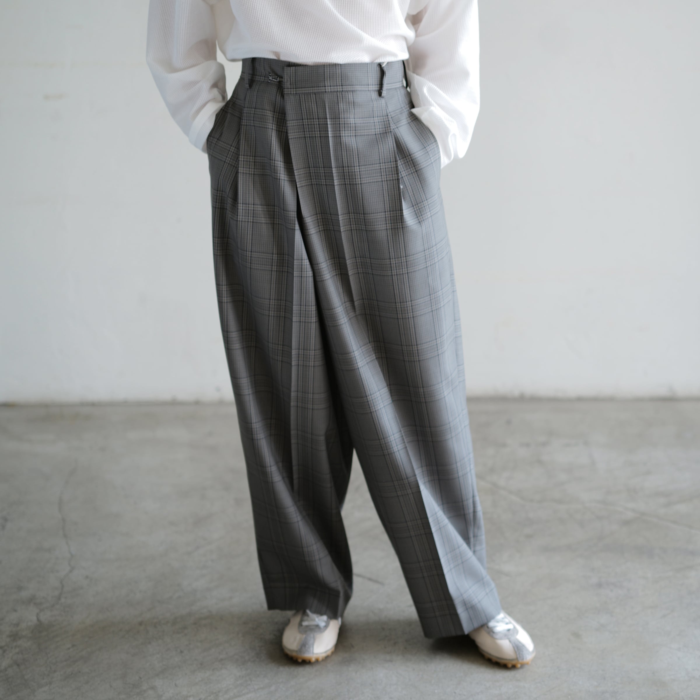 Wool Check Over Size Pants