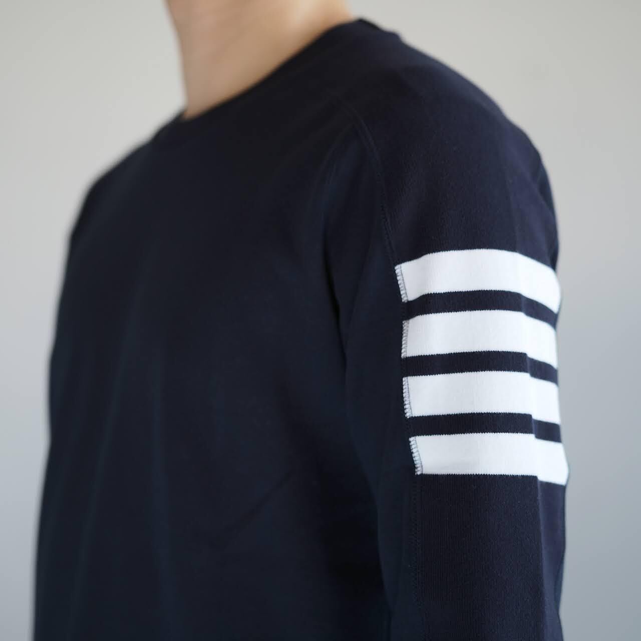 LONG SLEEVE TEE W/ 4 BAR STRIPE IN MILANO COTTON